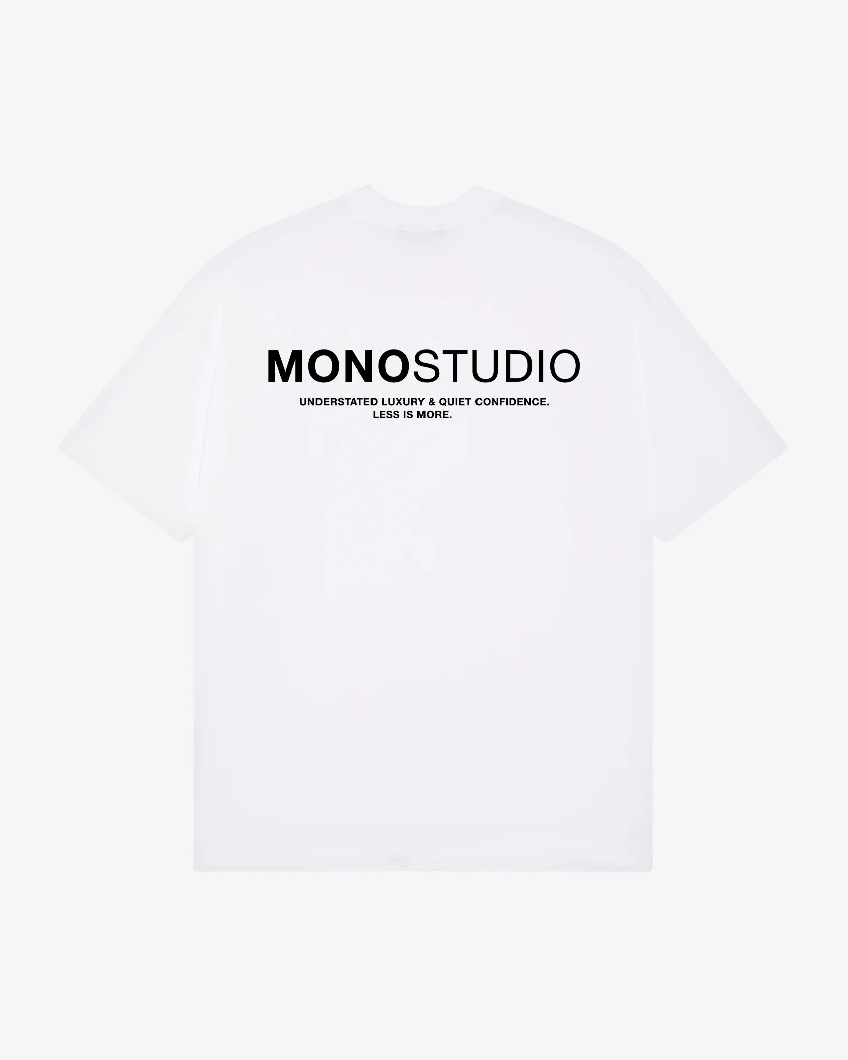 The Monostudio white Ethos T-shirt printed on our Classic heavy weighted silhouette. Designed for those who appreciate the art of simplicity and quiet confidence, this tee embodies effortless & timeless style.